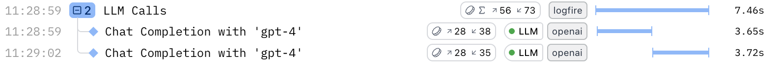 Use Logfire’s LLM panels to inspect every round‑trip between your application and a large‑language model (LLM) in real time. For each span Logfire captures: